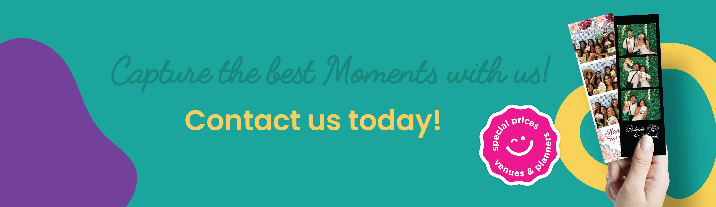 Our package prices are listed on our website.Tell us a bit about your event, and we’ll confirm availability and guide you to the best option for your date. Please enable JavaScript in your browser to complete this form.Name *Email *Phone Number you are or EventWeddingQuinceañeraBirthday PartyFamiliar reunionCorporate eventAnniversaryGraduationOtherPackage you are interested PicClassic with Prints - 2 hrsPicPremum with prints -3 hrsPicDeluxe with prints - 4 hrsPic360 - 2 hrsPic360 - 3 hrsPic360 - 4 hrsEvent Date *What time would you like the service? (Aprox) *Venue / Event Address *How many guests would you have?Comment or Message *Submit